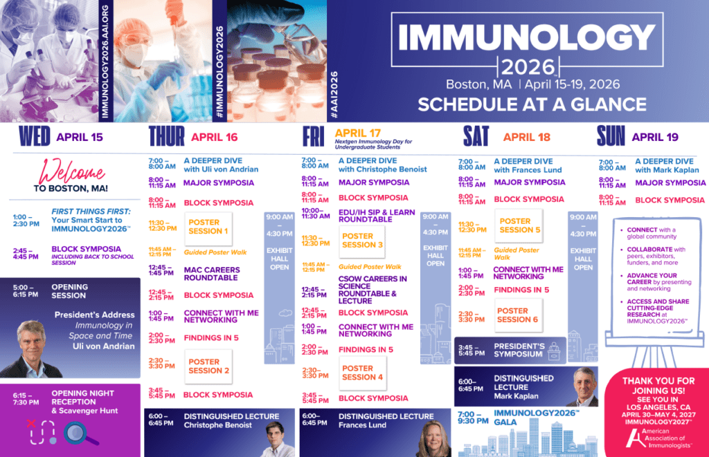 Schedule at a Glance View the IMMUNOLOGY2026™ Schedule at a Glance and start planning your meeting experience!